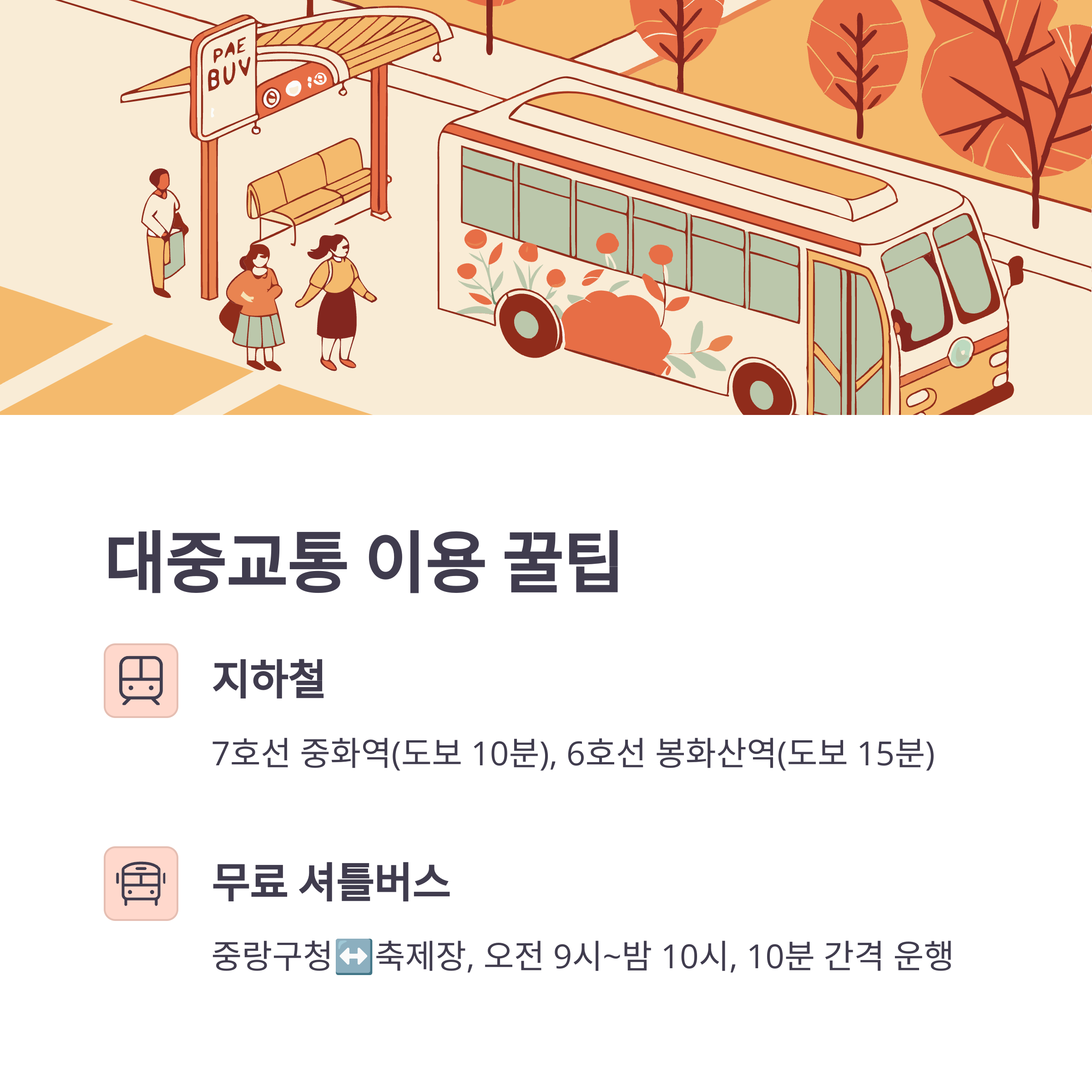 또한, 축제 기간 중 중랑구청과 축제장을 왕복하는 무료 셔틀버스