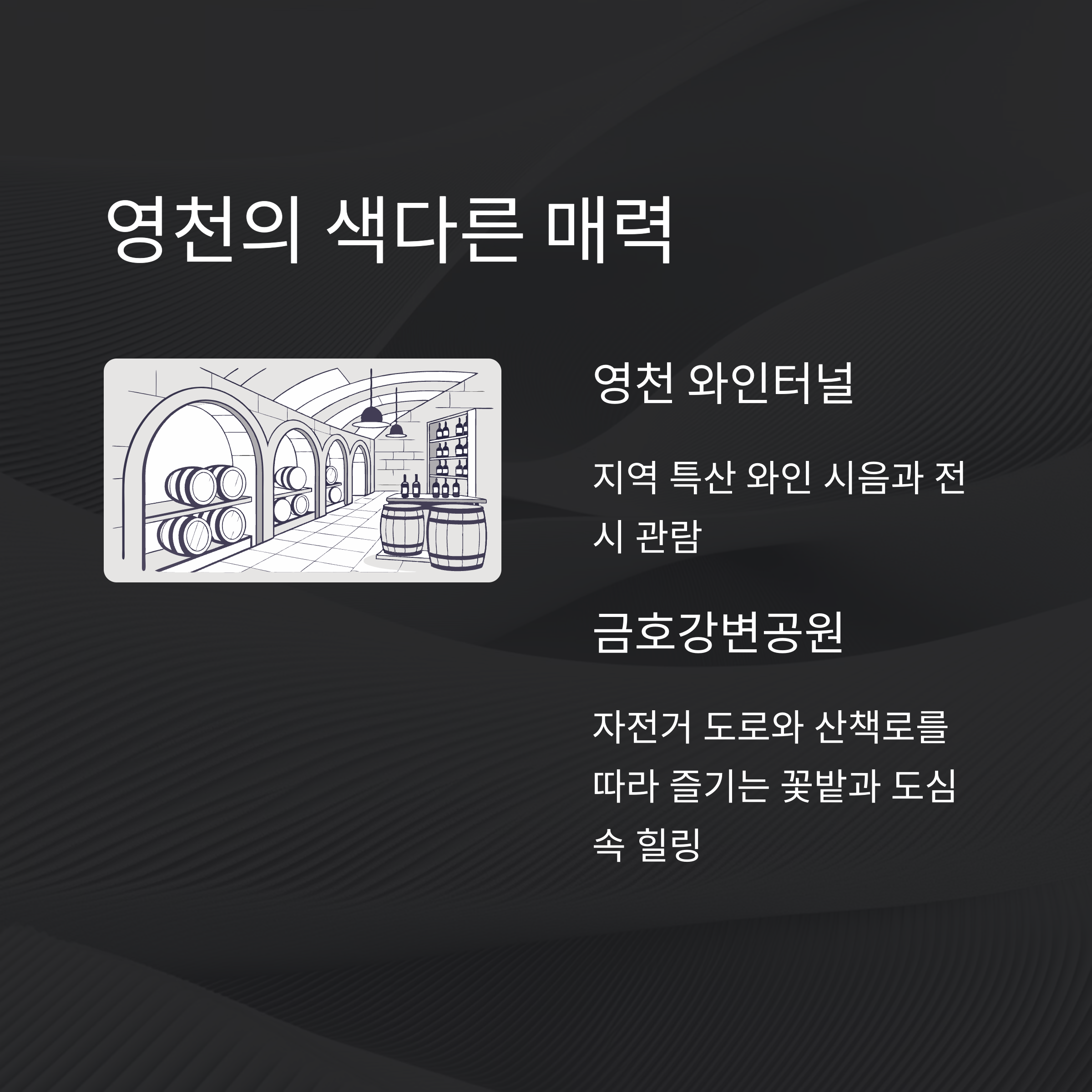 영천시내에서는 영천 와인터널이 색다른 매력을 더합니다.