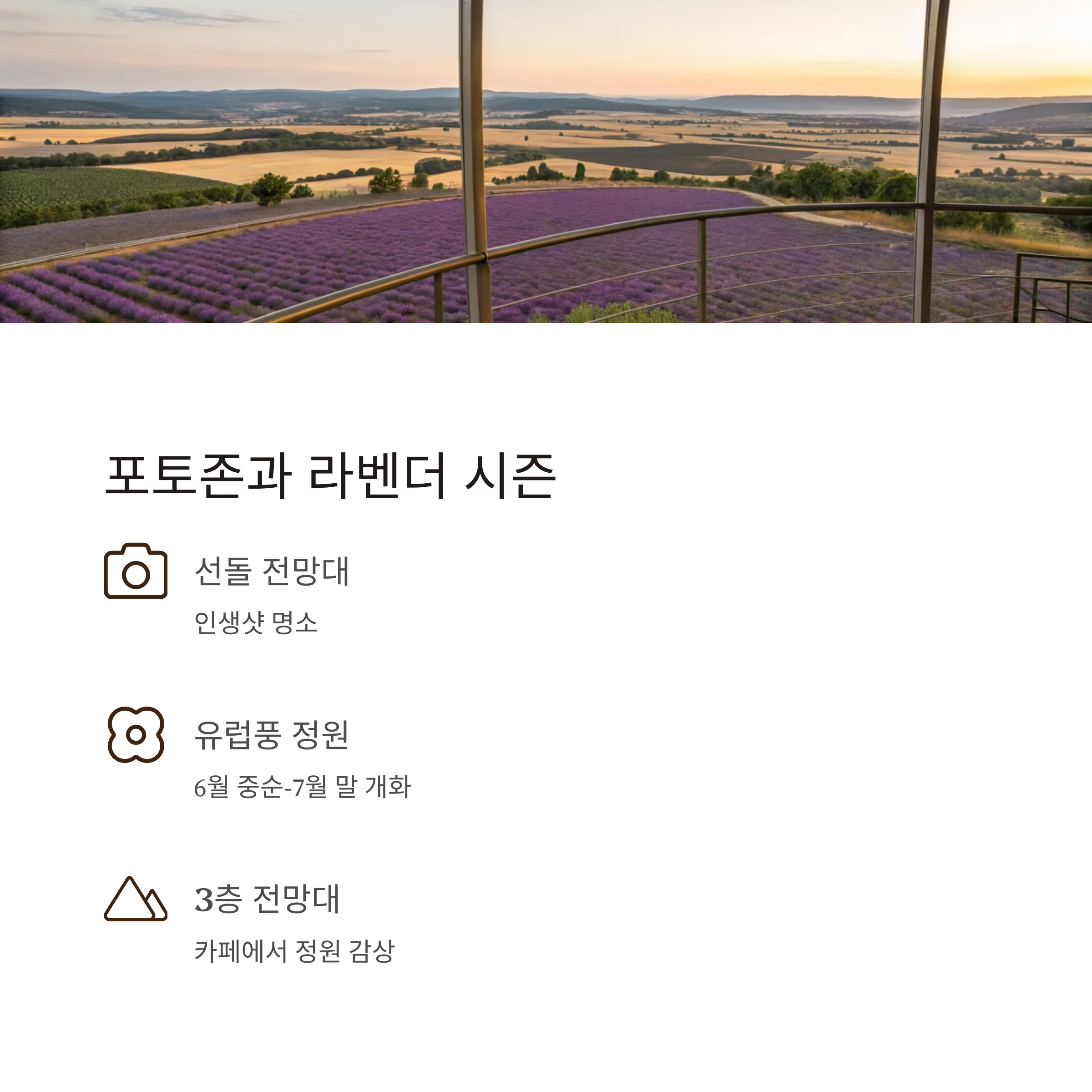 선돌 전망대, 유럽풍 정원, 대형 라벤더밭은