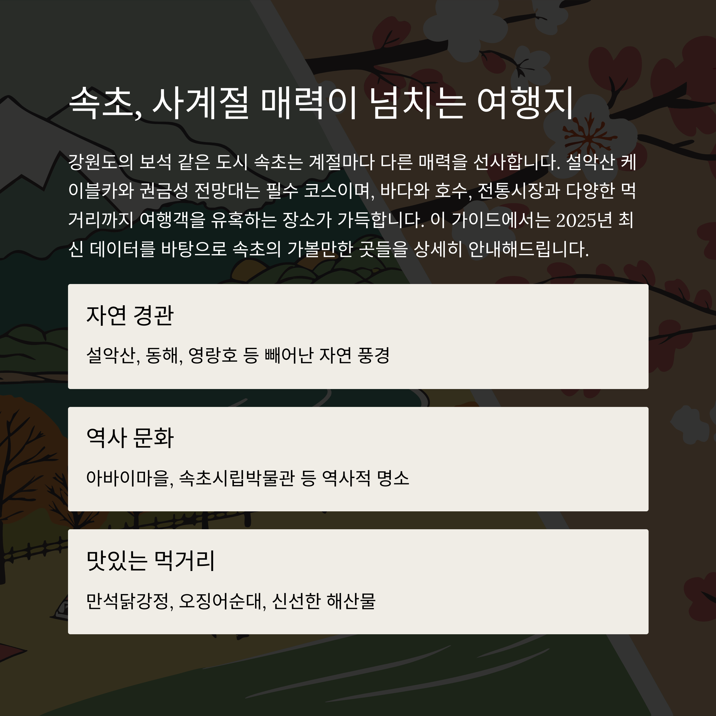 2025년 속초 여행의 핵심 포인트를 최신 정보로 한눈에 정리했습니다.