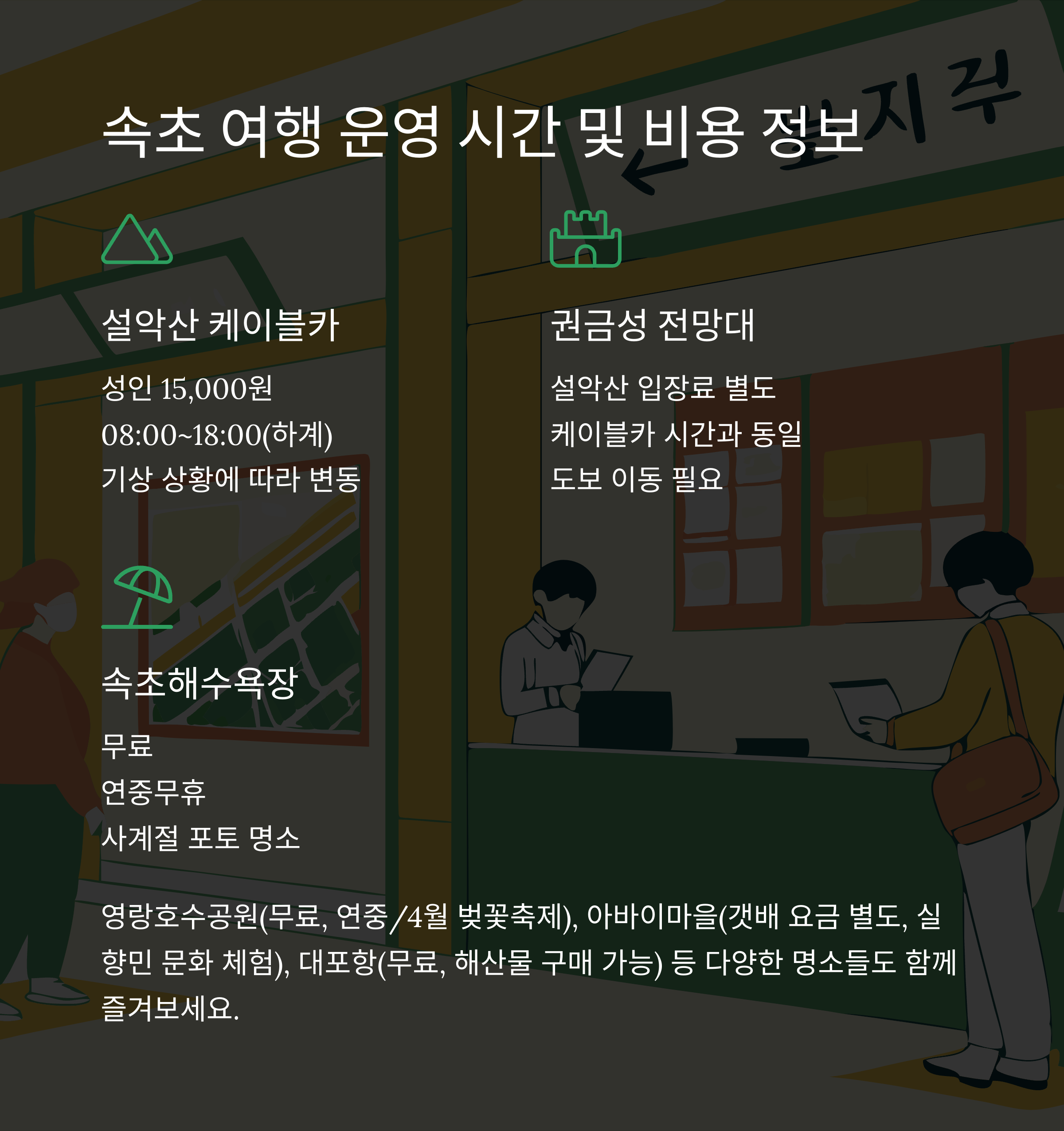 속초 여행 시 꼭 필요한 운영 정보 및 요금표도 함께 정리했습니다.