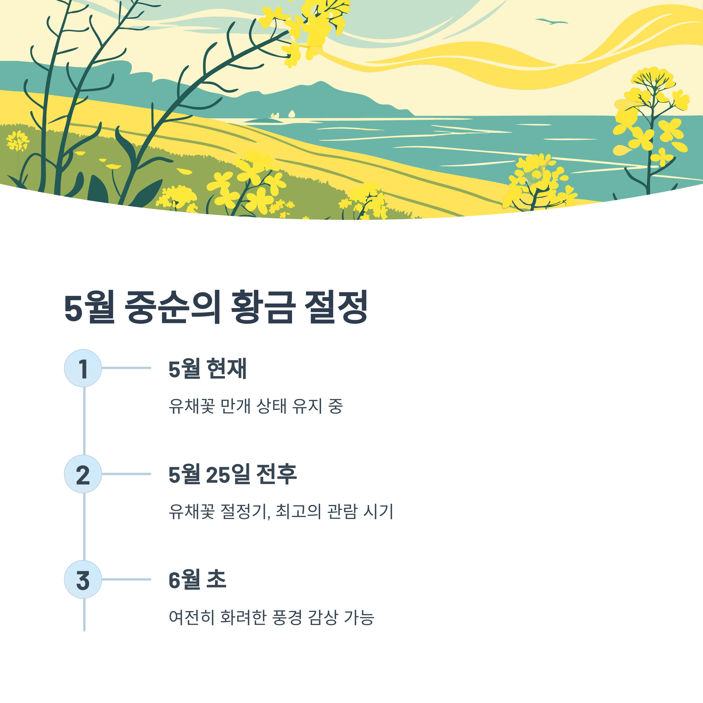 2025년 5월 현재, 사근진 유채꽃밭은 만개한 상태를 유지하고 있습니다.