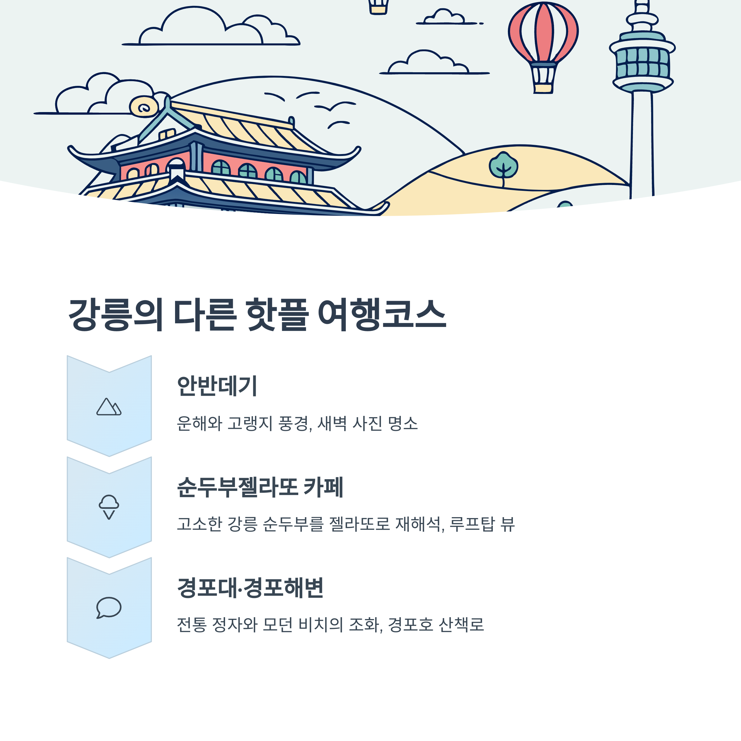 | 경포대·경포해변 | 전통 정자와 모던 비치가 조화, 경포호 산책로 추천 |