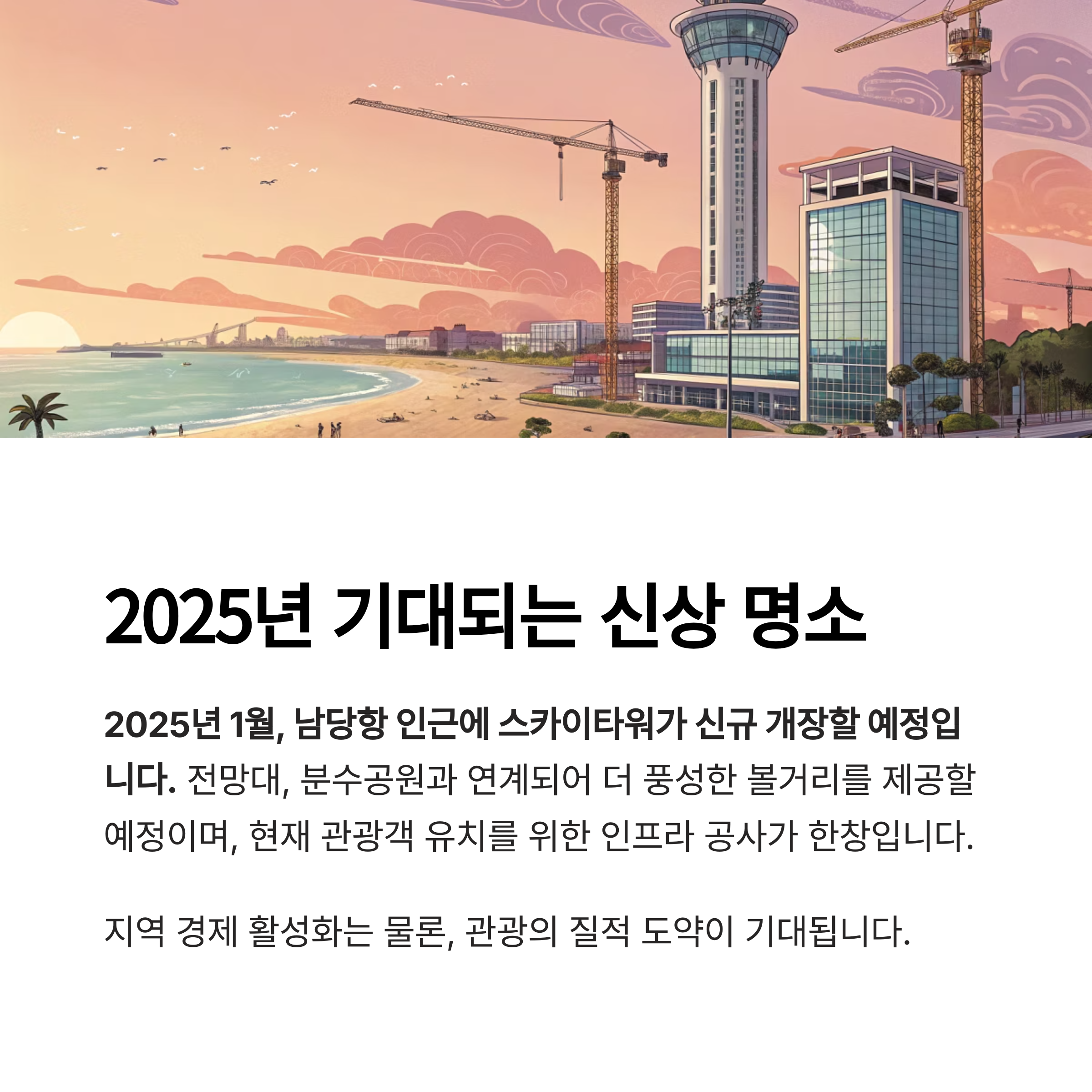 2025년 1월, 남당항 인근에 스카이타워가 신규 개장할 예정입니다.