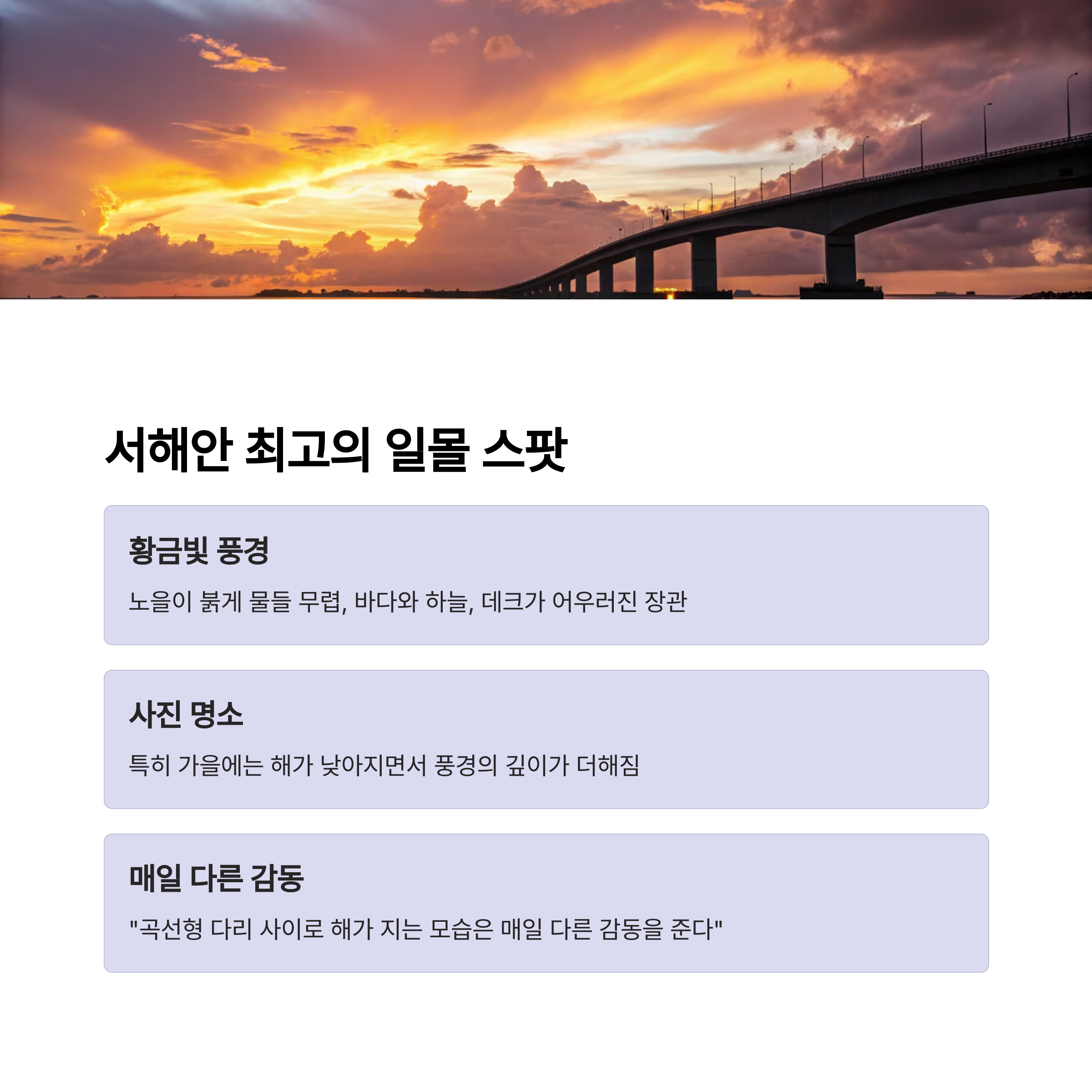이 글에서는 노을전망대의 구조와 주변 명소, 축제 정보까지 알차게 소개해드립니다.