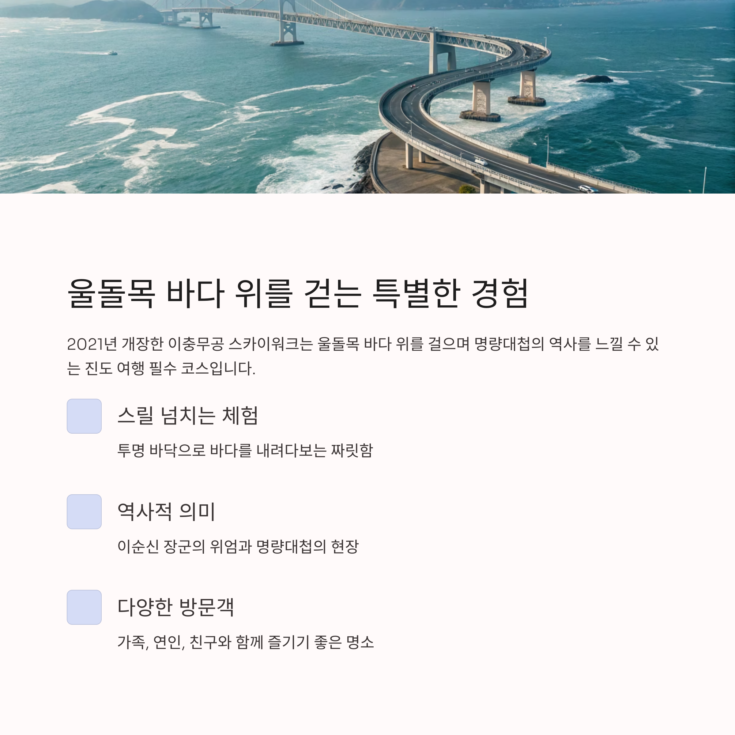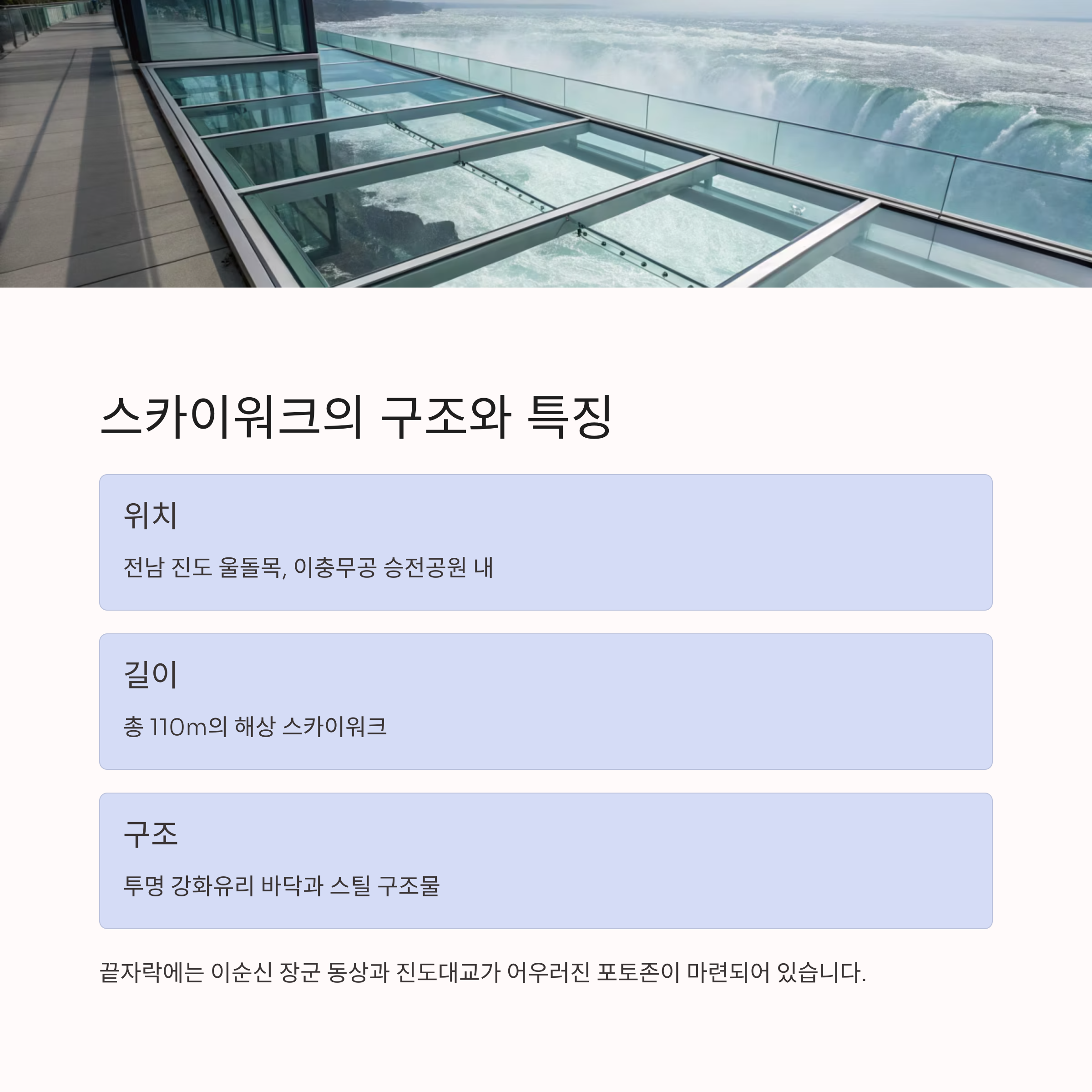진도 이충무공 스카이워크는 스릴과 역사, 절경이 어우러진 명소로 남해 여행에