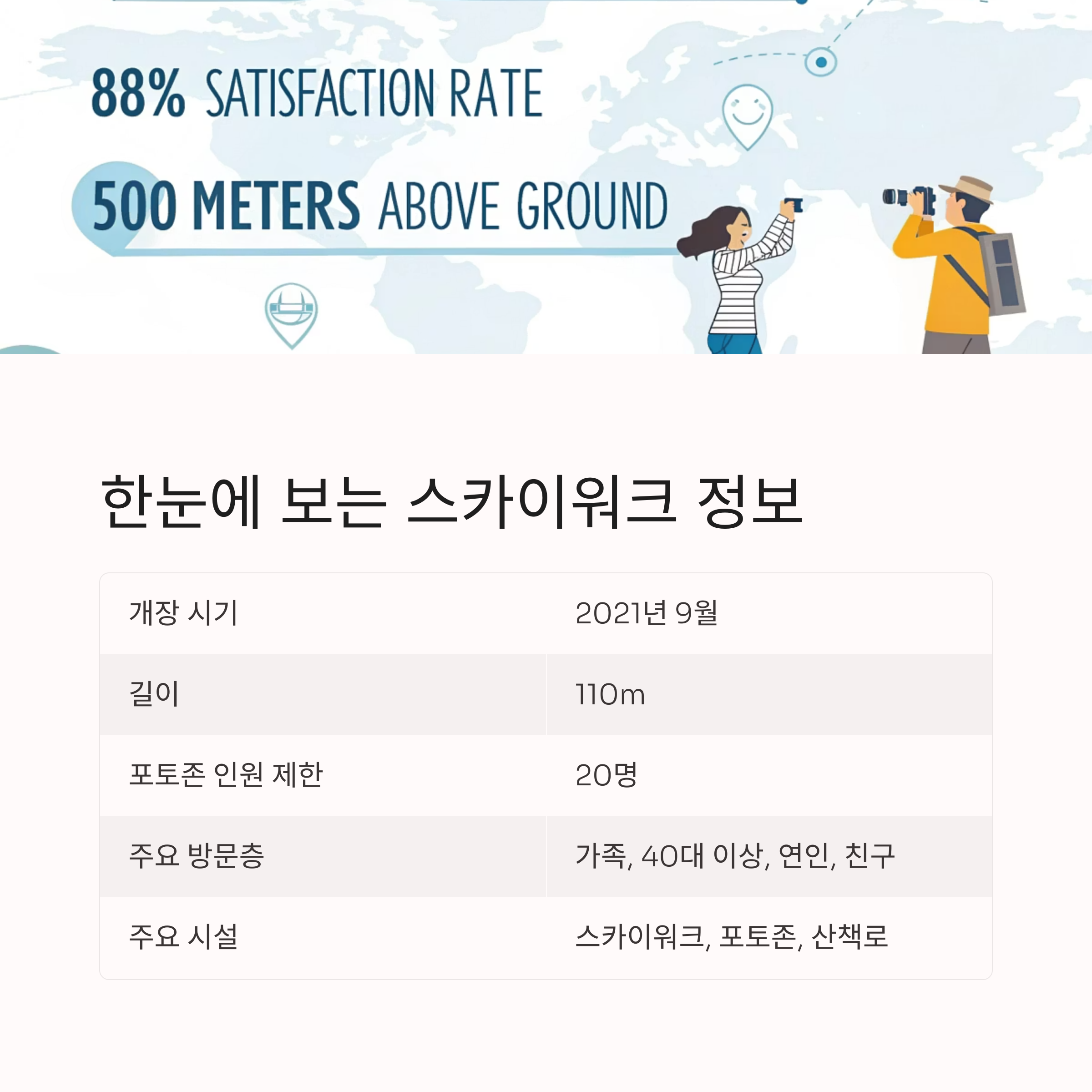 함께 찾기에도 안성맞춤입니다. 이번 글에서는 스카이워크의 특징, 주변 코스,