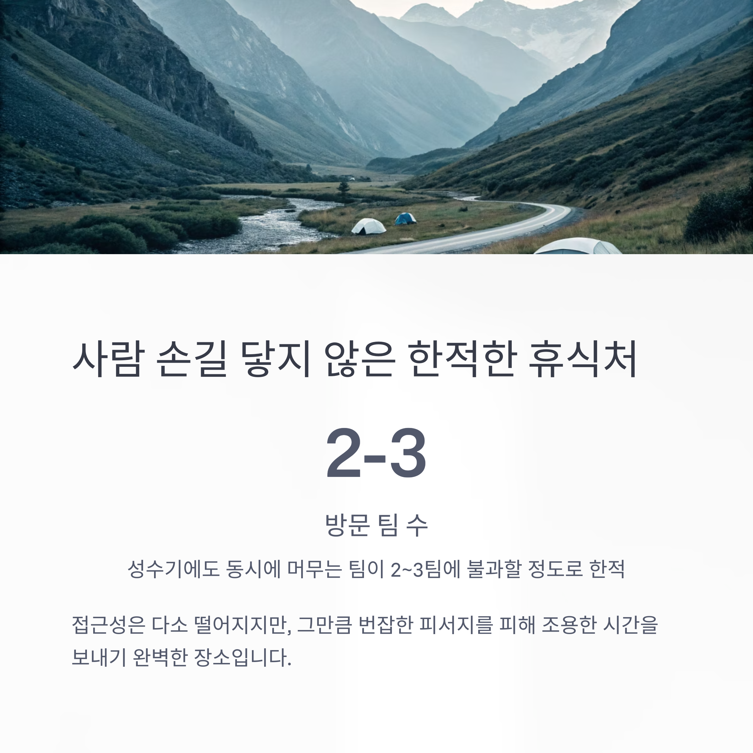 | 방문객 | 성수기에도 2~3팀 수준의 한적함 |