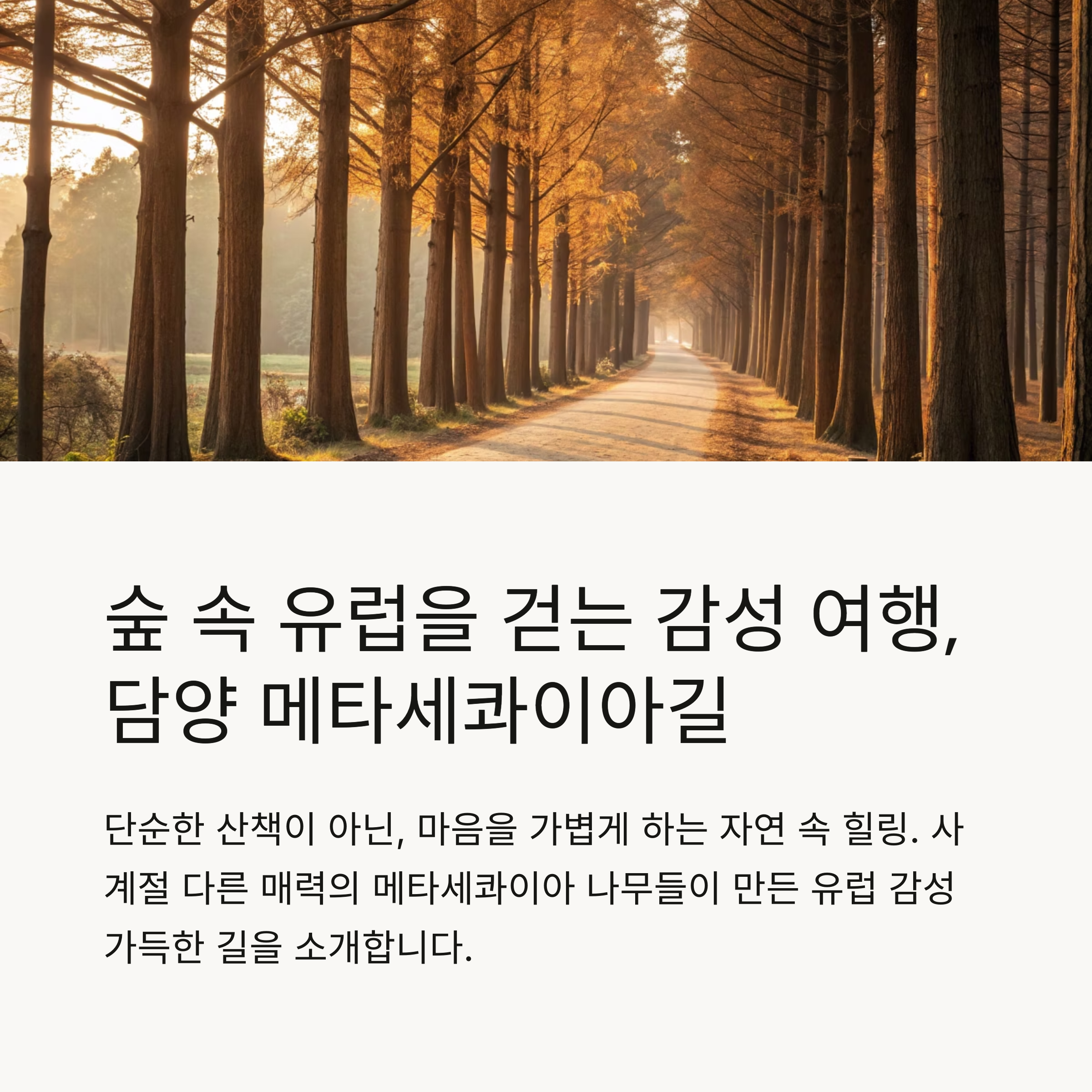 담양 메타세콰이아길은 단순한 여행지가 아닌, 몸과 마음이 함께 쉬어가는 공간이다.