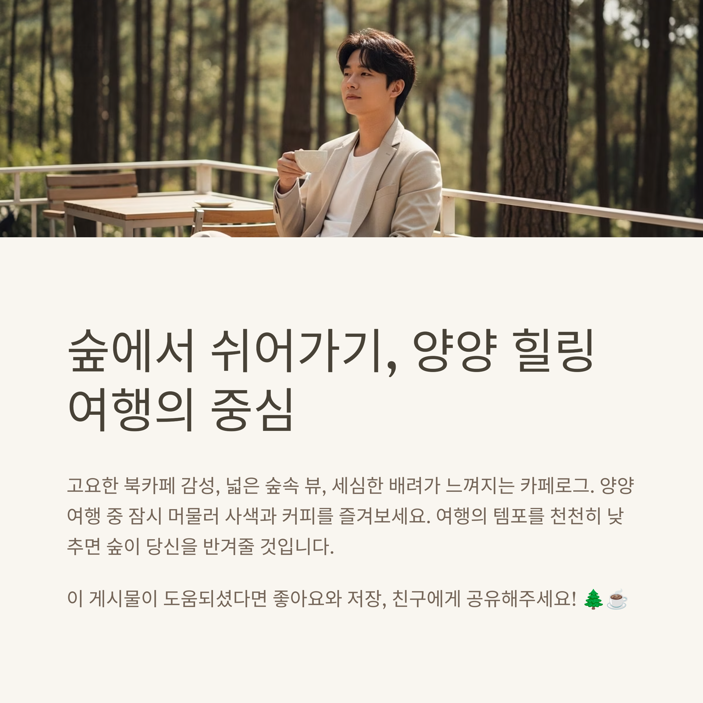 양양에는 이외에도 다양한 숲속 뷰 카페들이 있어 하루 종일 힐링 코스로 연결 가능합니다.