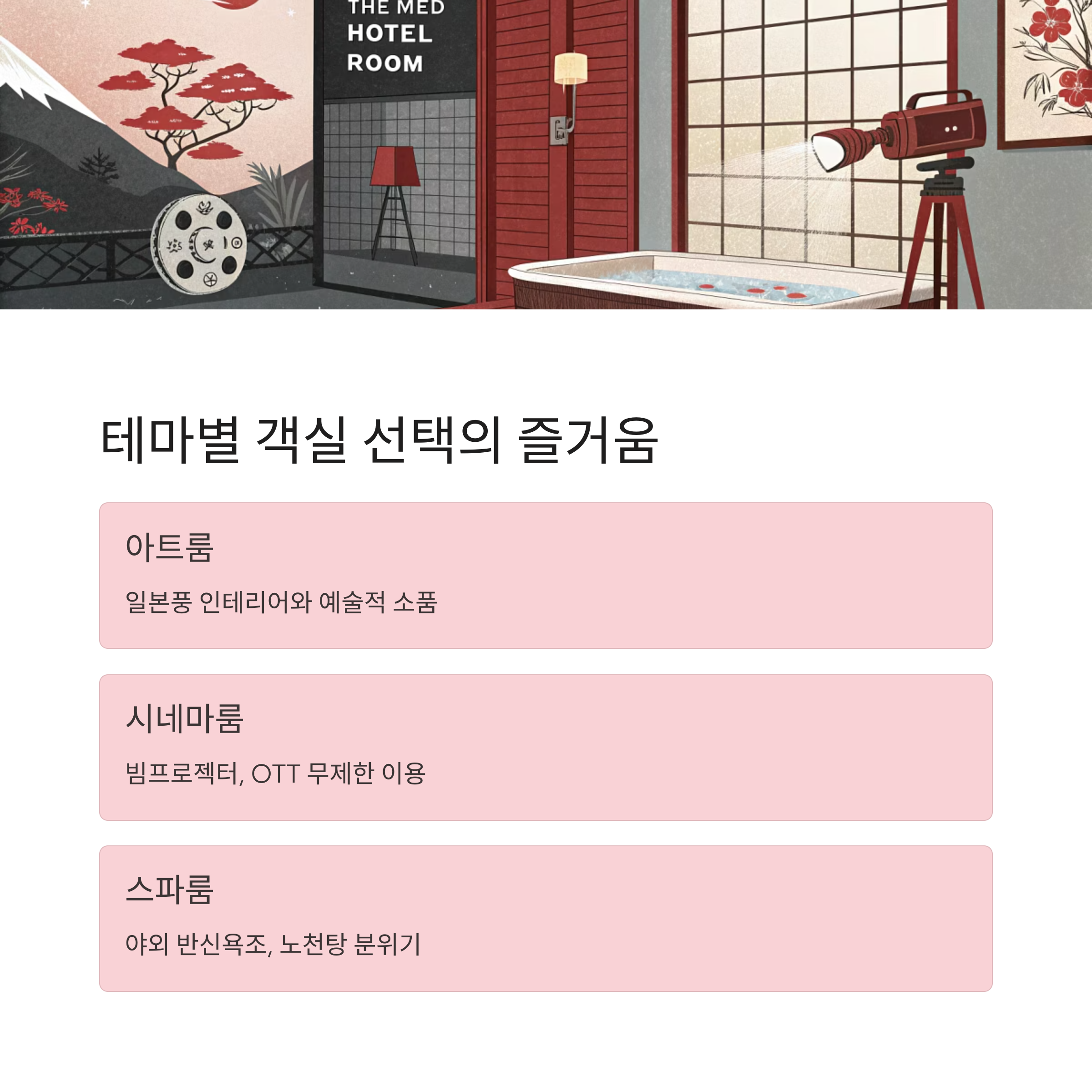 테마별 객실에서 일본 현지 분위기 체험