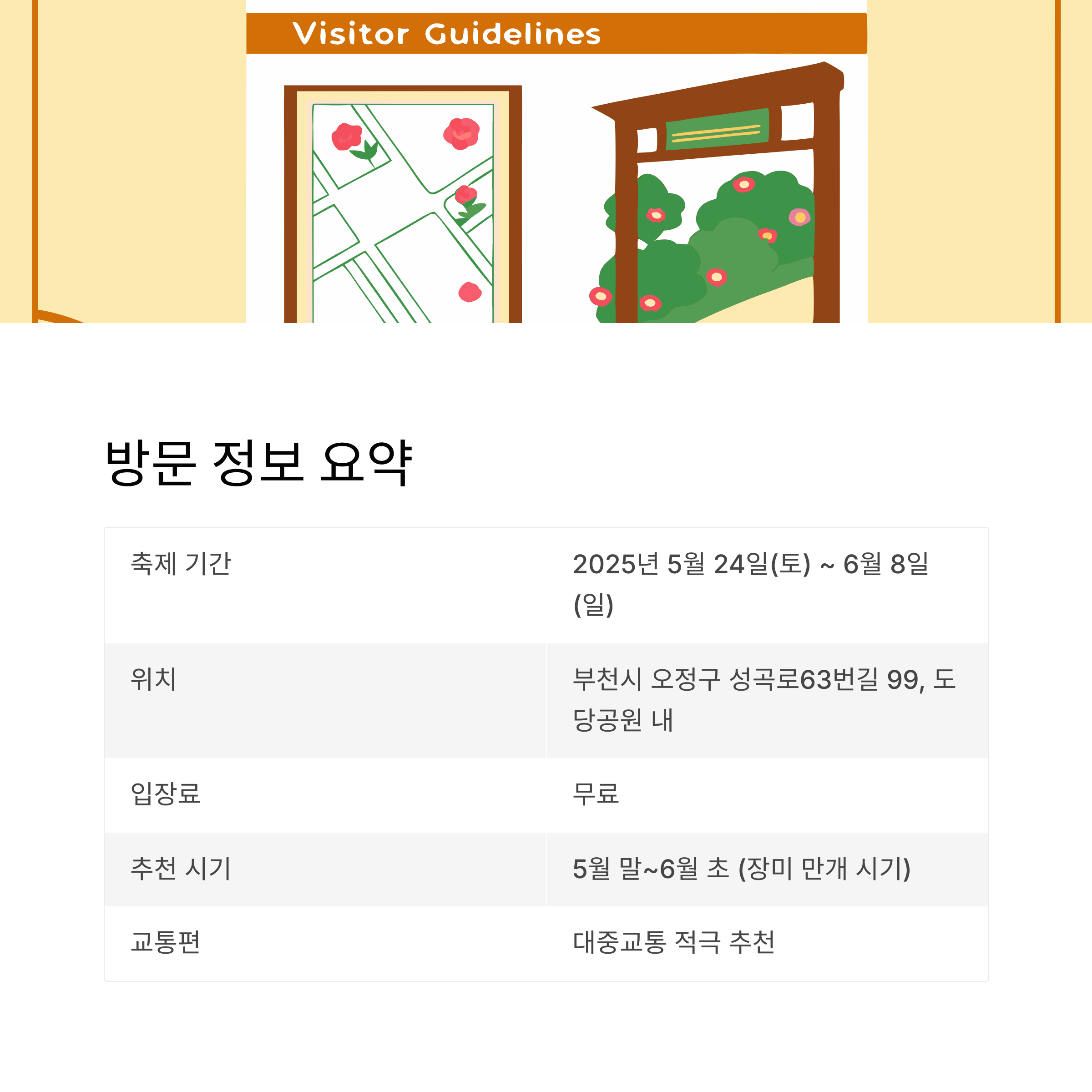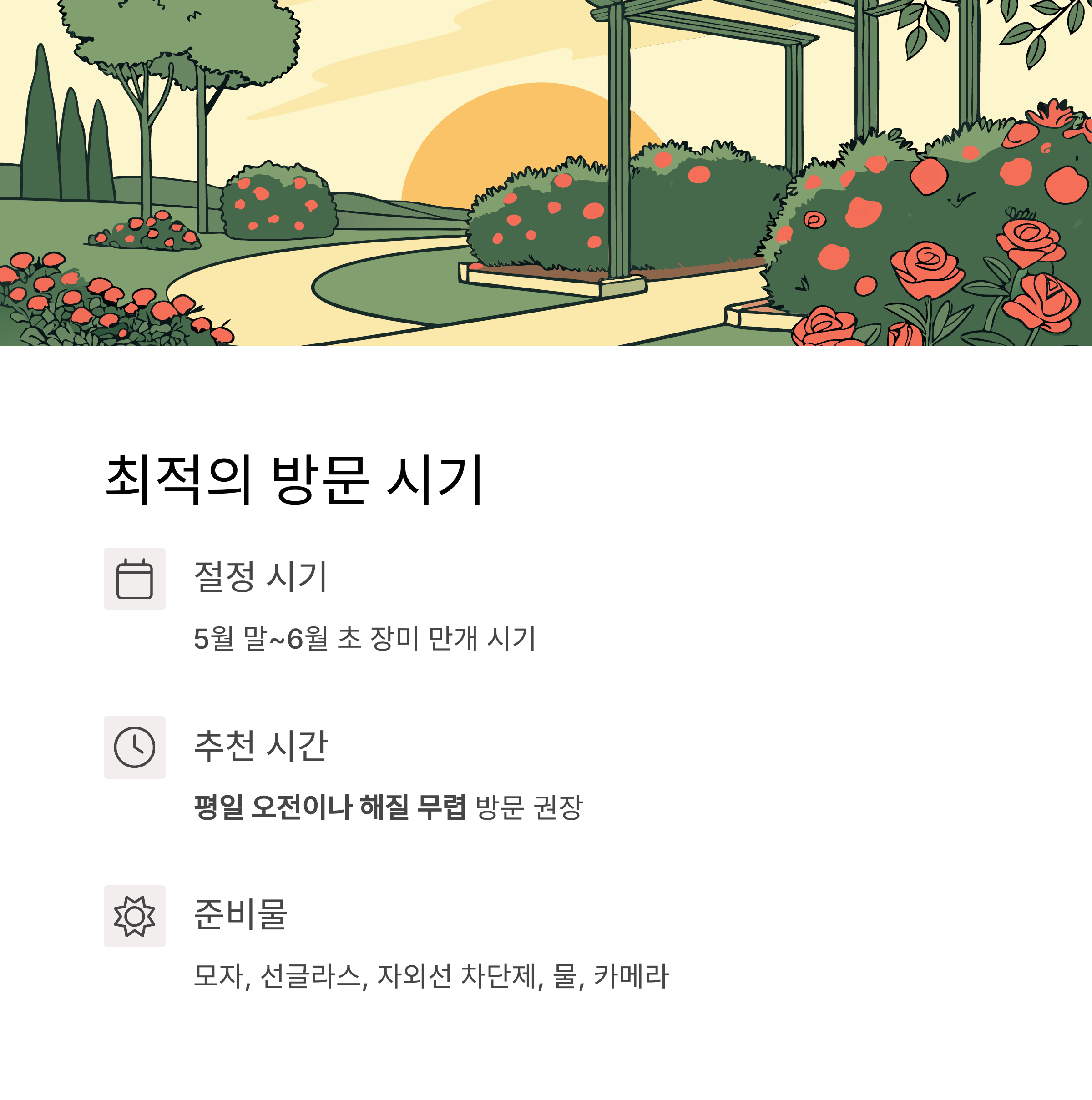 | 추천 시기 | 5월 말~6월 초 (장미 만개 시기) |
