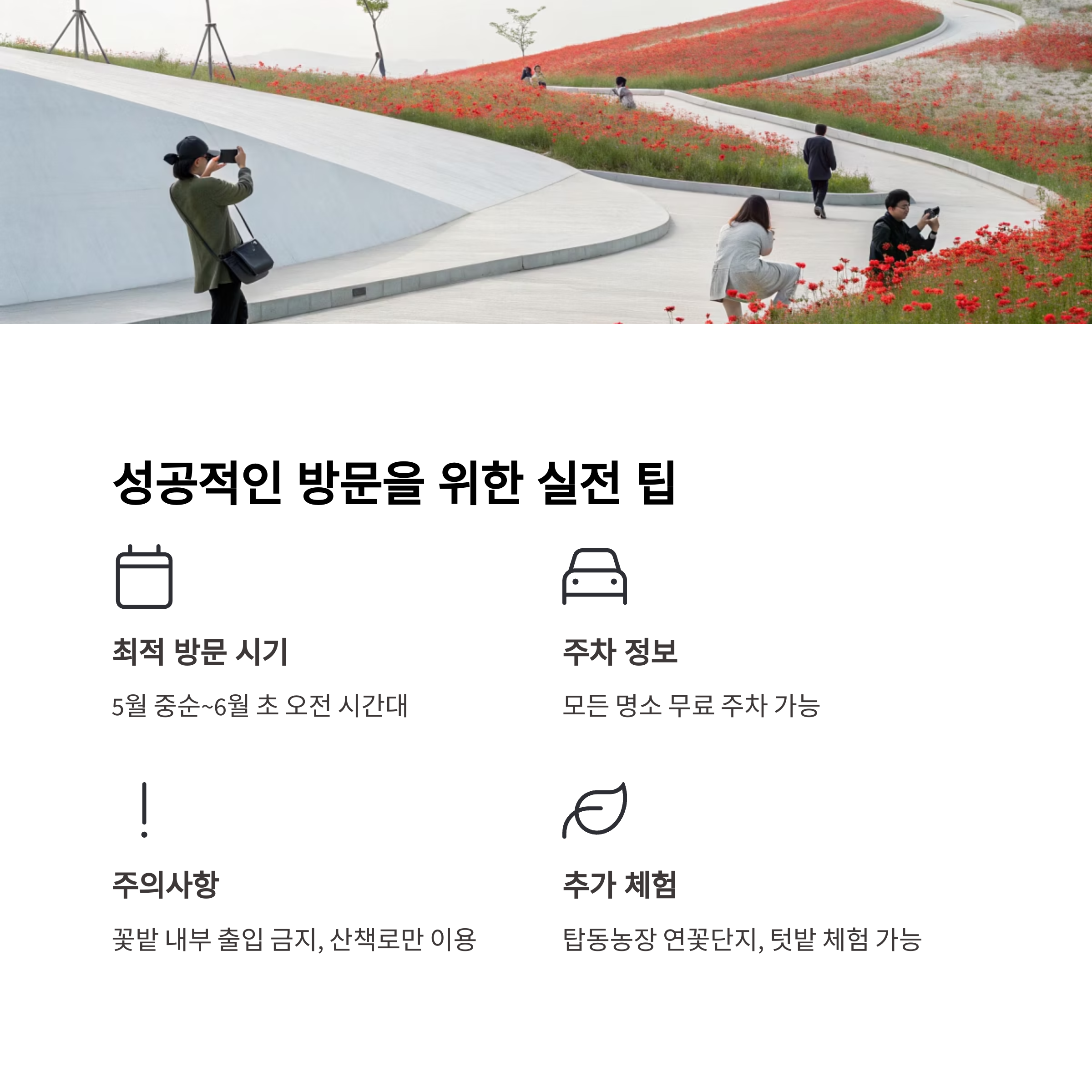 "붉은 양귀비가 물결치는 압도적 풍경"을 만끽할 수 있습니다.