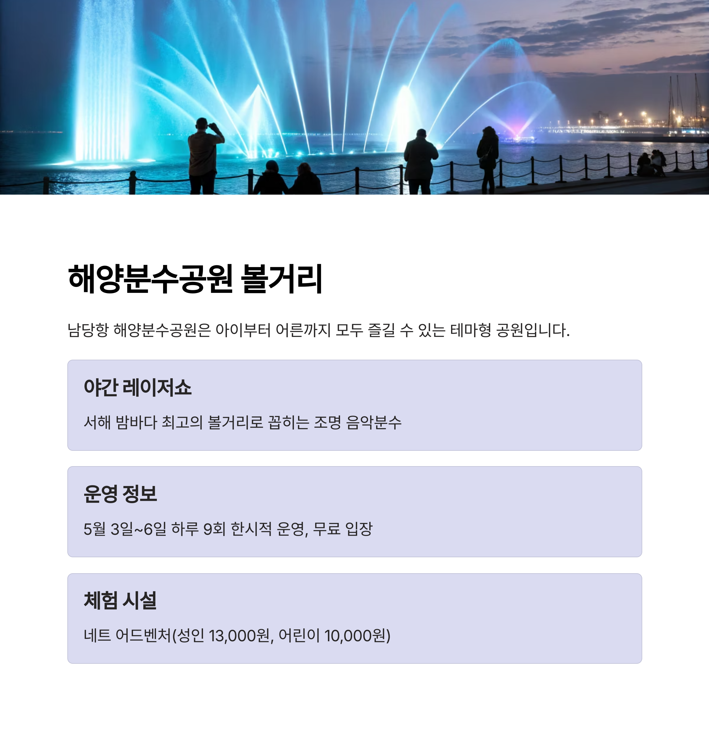 이번 가이드에서는 2025년 기준으로 가장 최신 정보를 바탕으로 해양분수공원 운영 현황,