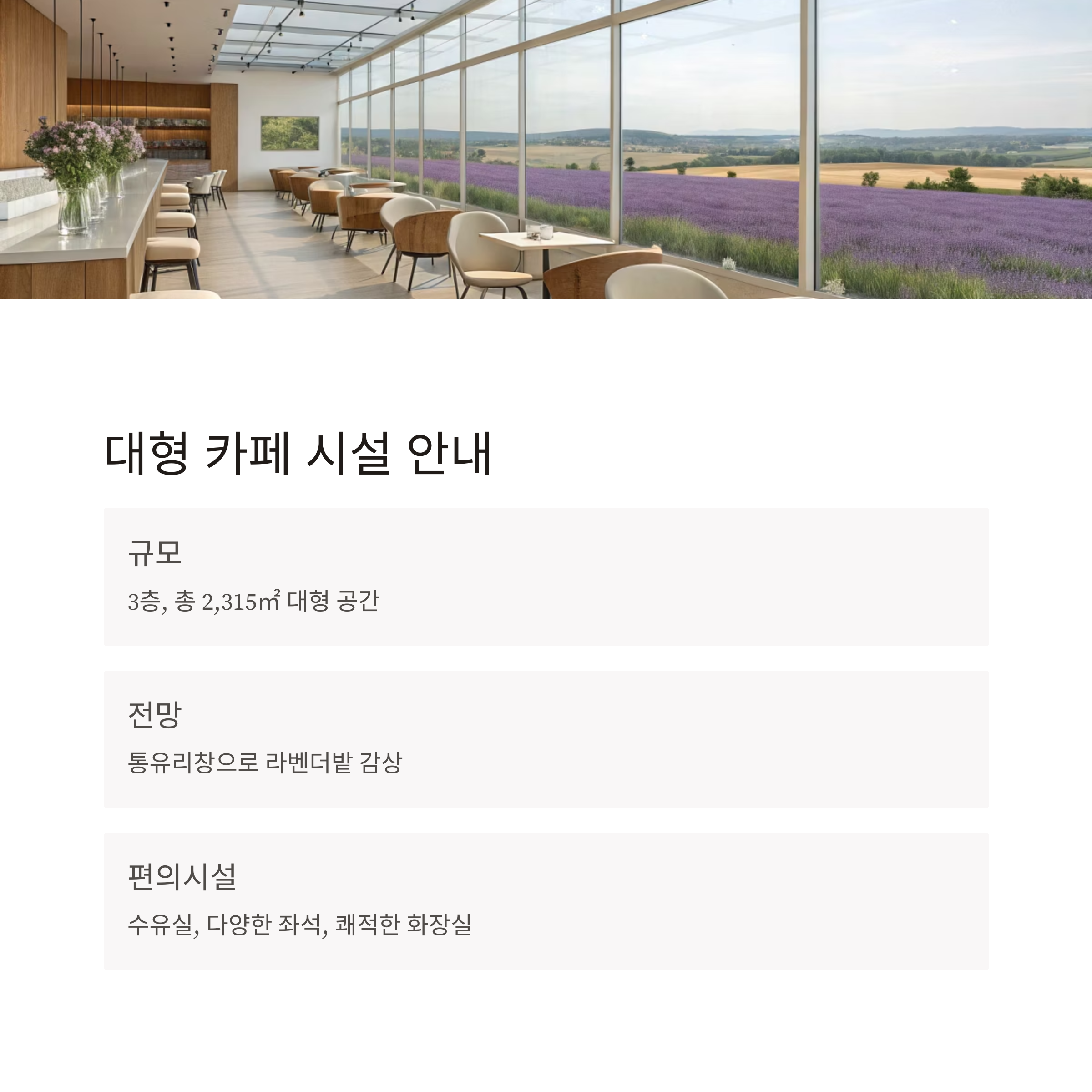 | 대형 카페 | 약 2,315㎡, 3층 전망대 포함 |