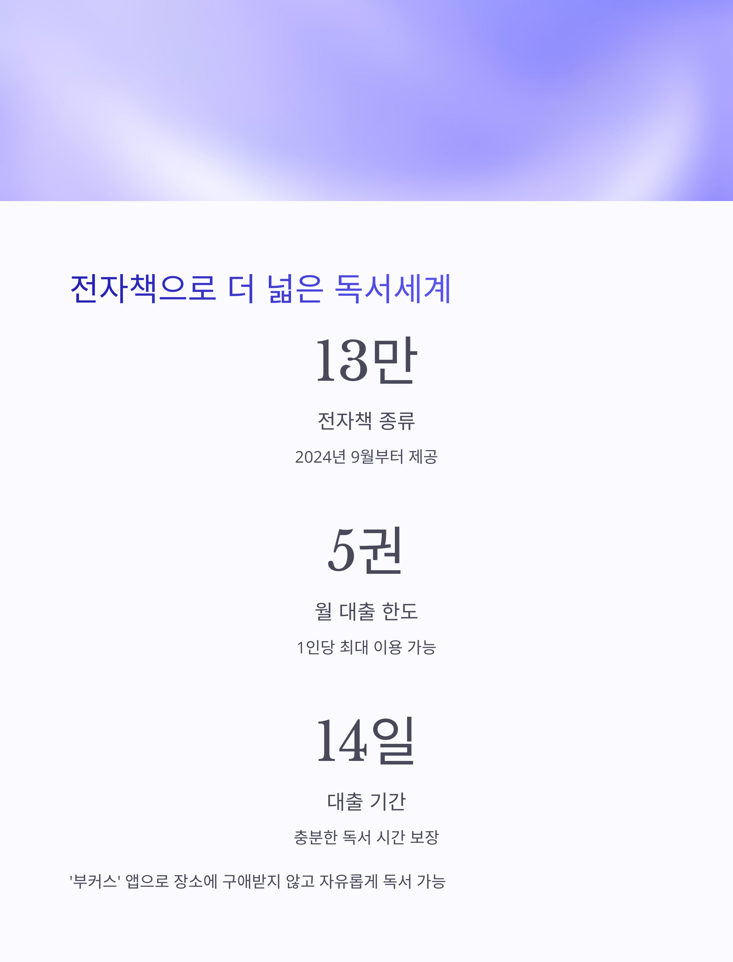 2024년 9월부터는 13만 종의 전자책 서비스도 제공되어