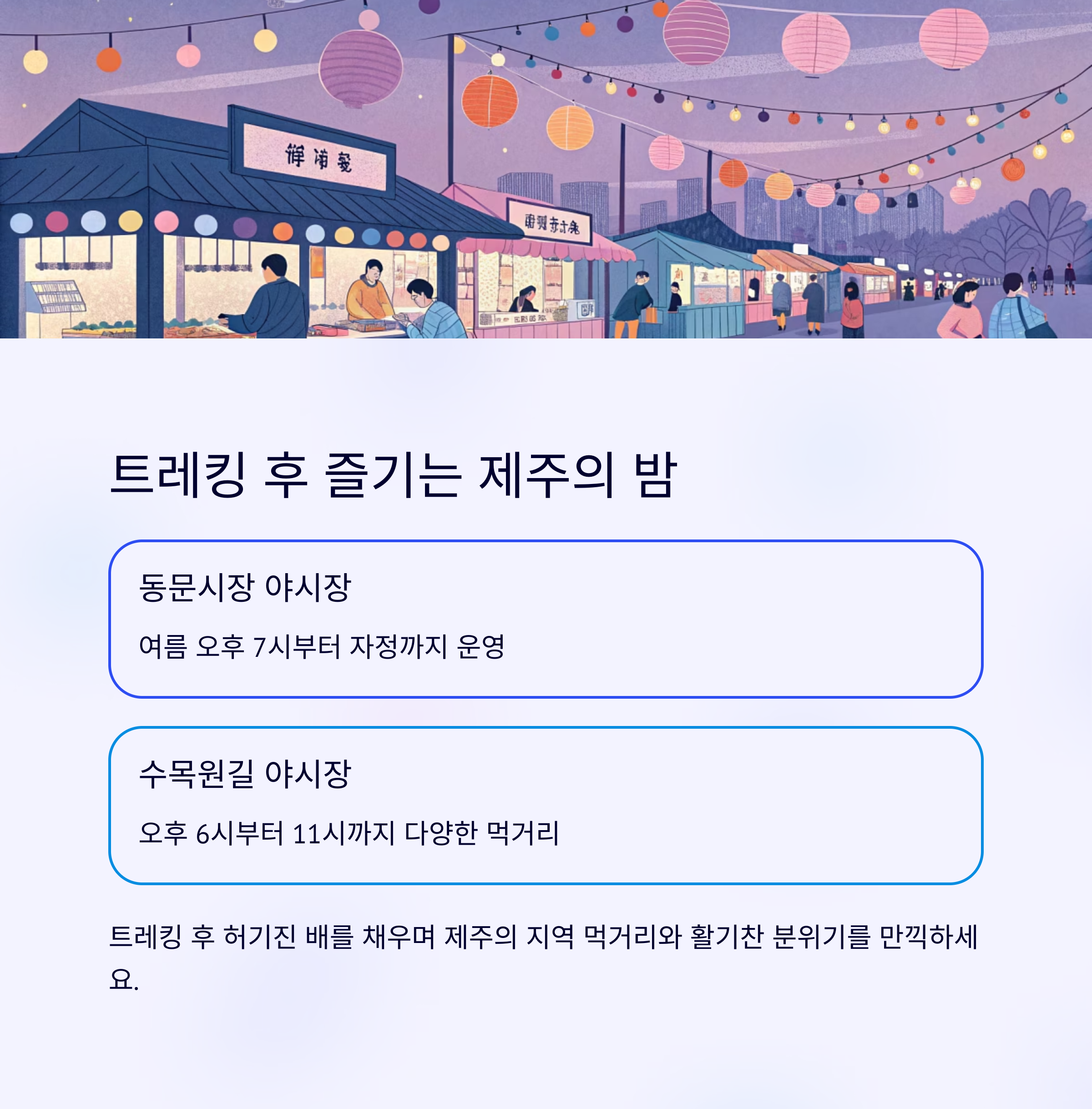 제주의 지역 먹거리와 활기찬 분위기를 만끽할 수 있습니다.