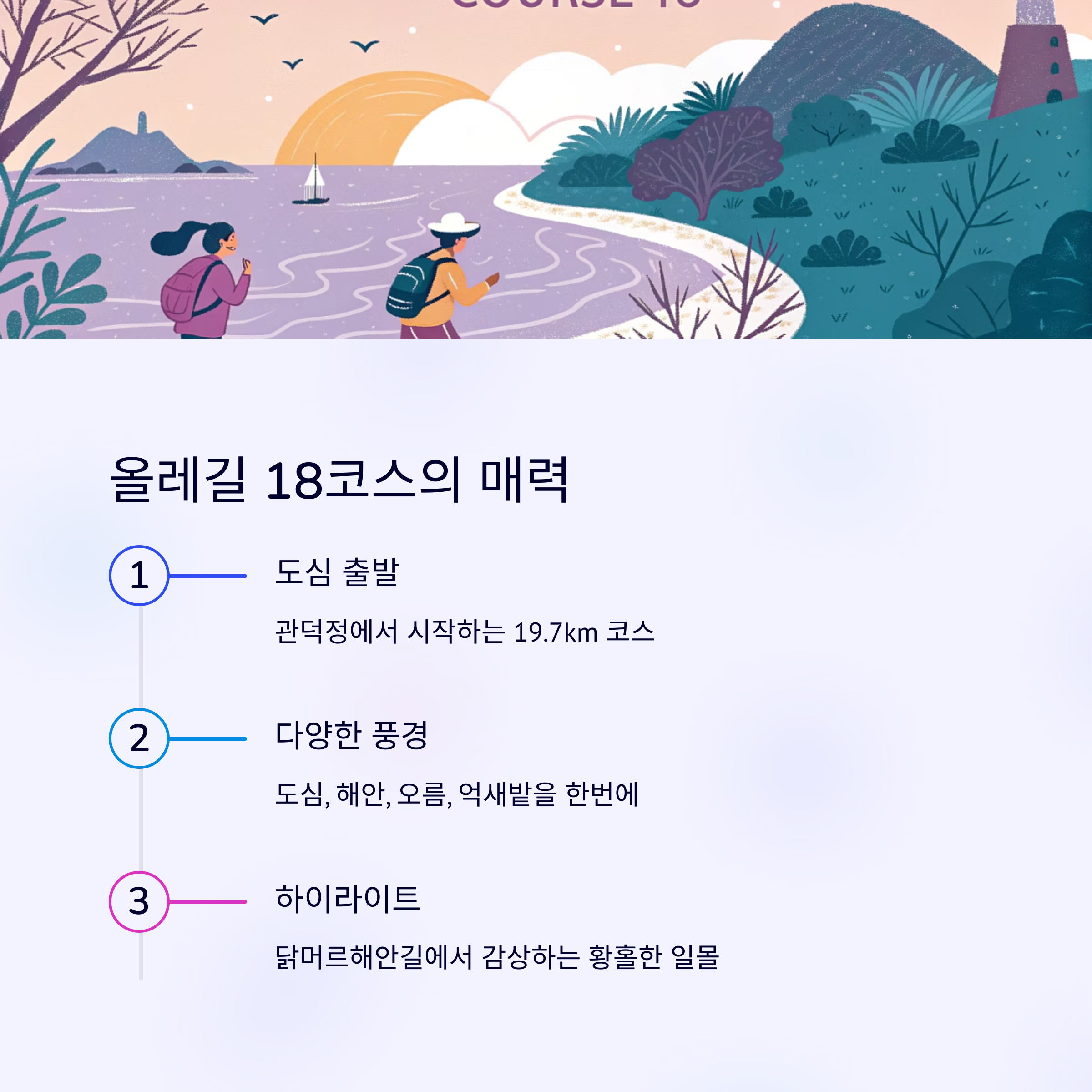 올레길 18코스: 일몰과 도시, 자연이 공존하는 트레킹