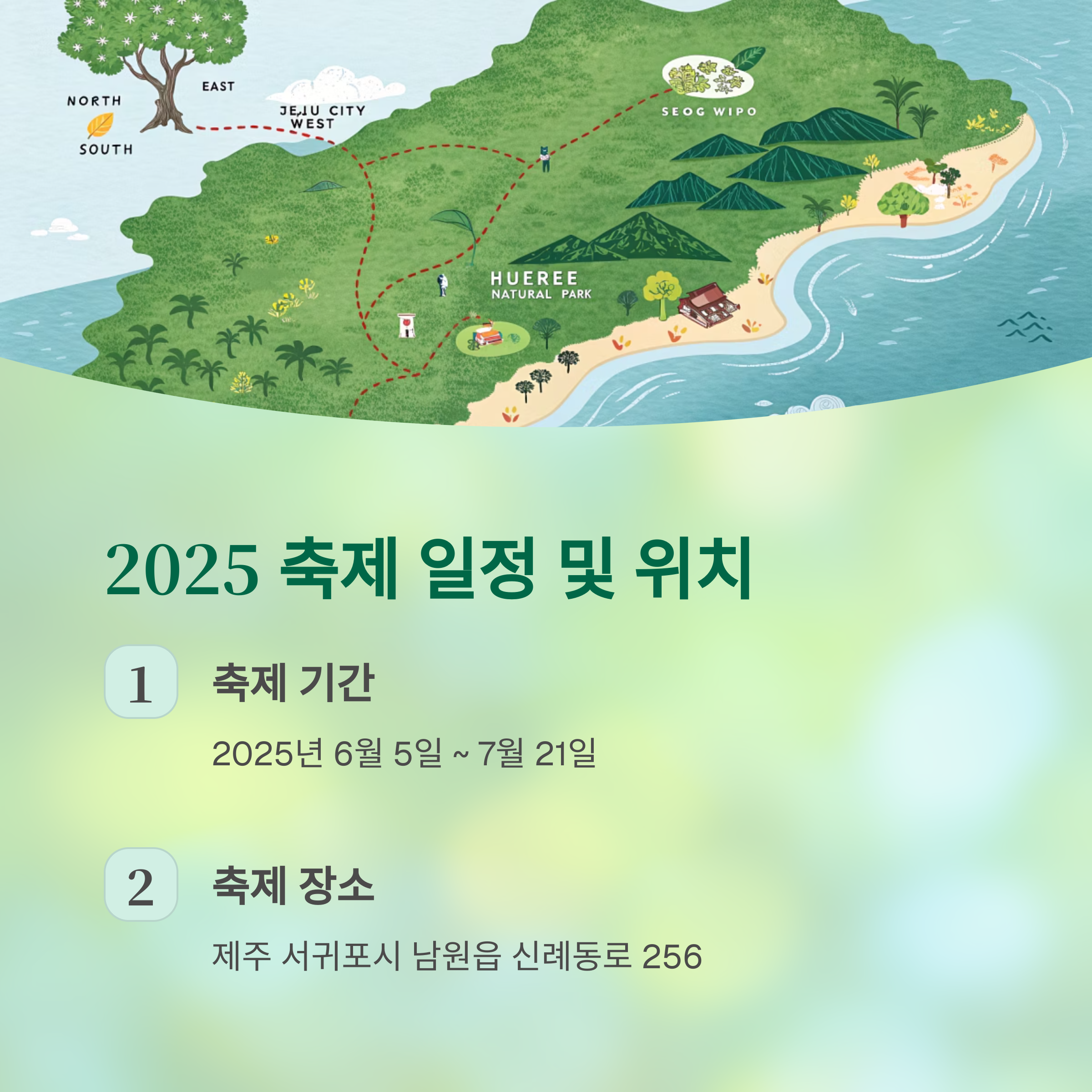 제주 서귀포시 남원읍 신례동로 256에서 진행됩니다. 축제 기간 내내