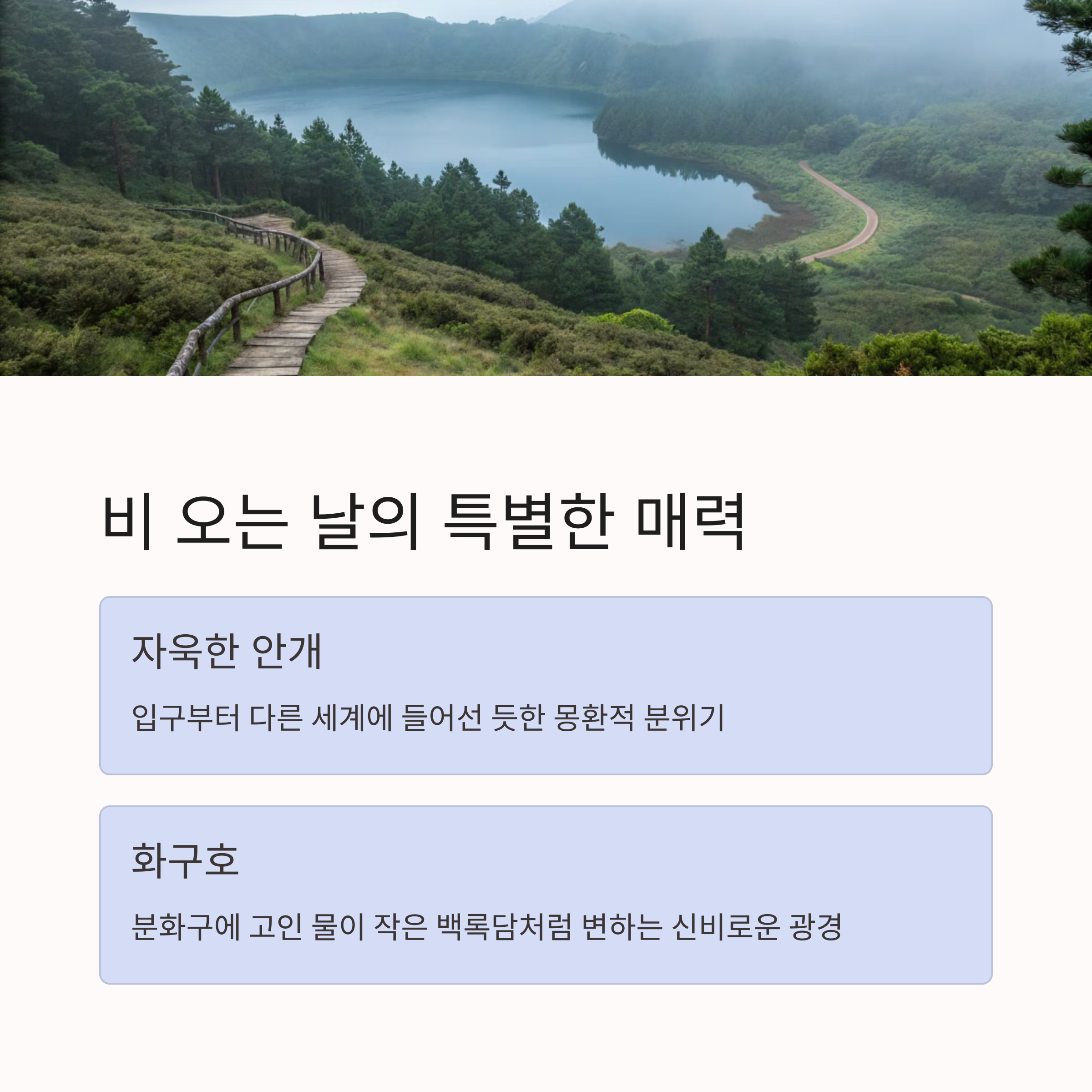 | 비 오는 날 | 분화구 화구호와 자욱한 안개 |