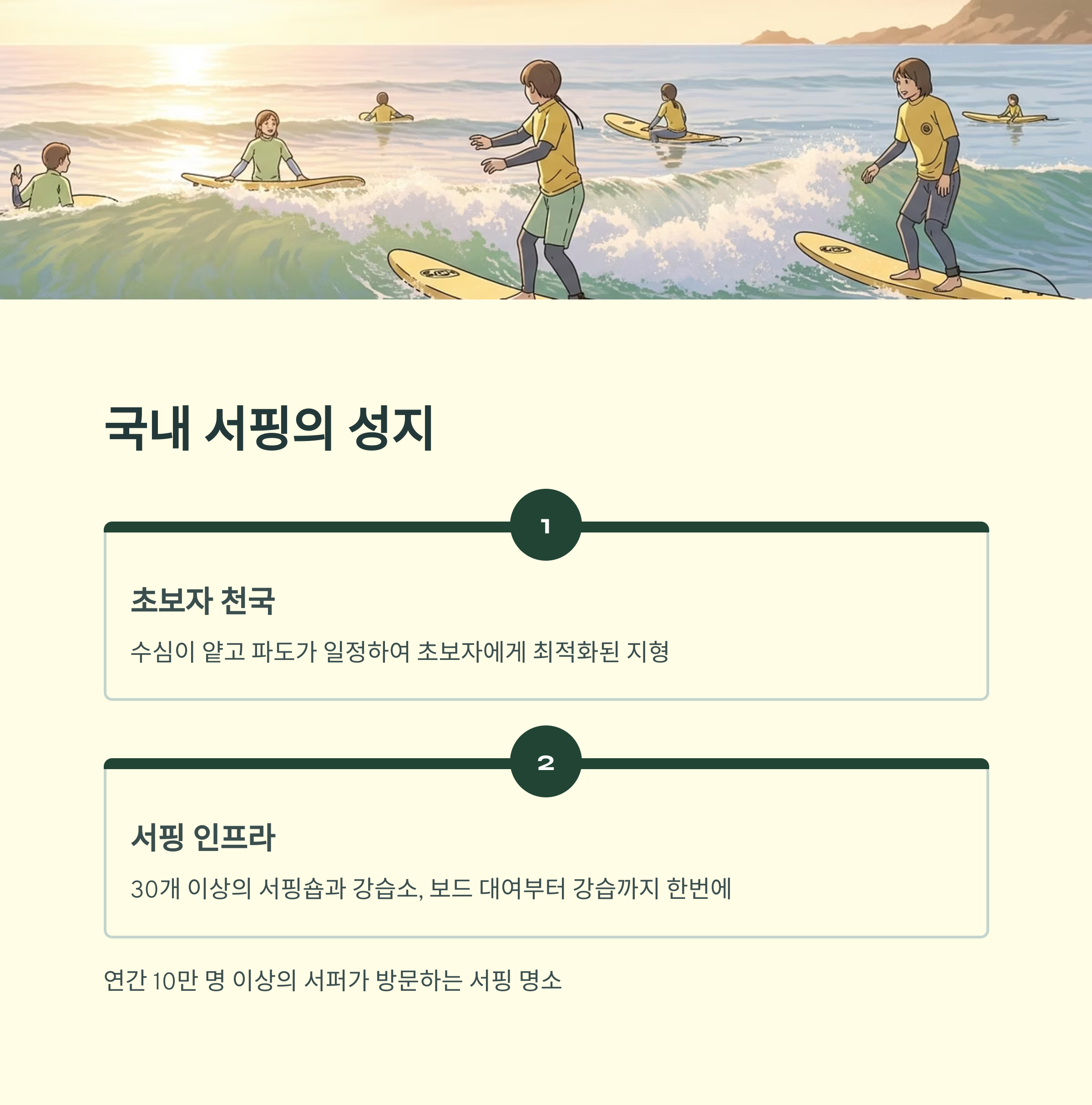 | 서핑 방문객 수 | 연간 약 10만 명 이상 |