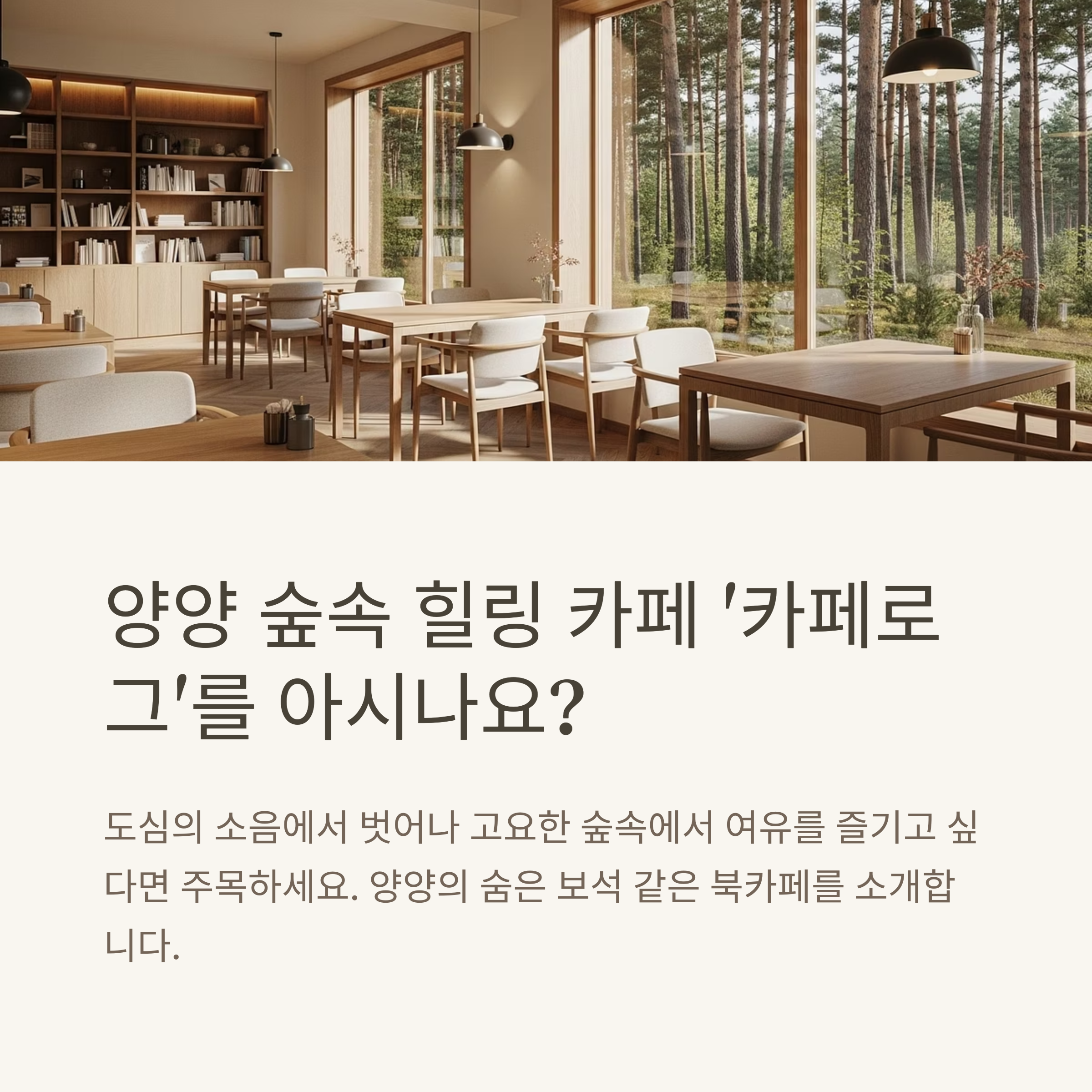 양양 여행 중 고요한 숲속에서 여유를 즐기고 싶다면, 북카페 감성을 담은 ‘카페로그’를 추천드립니다. 본 글에서는 카페로그의 매력과 실사용 후기, 인근의 다른 숲속 뷰 카페들을 함께 소개하며, 조용한 여행을 원하시는 분들께 맞춤 정보를 제공합니다.